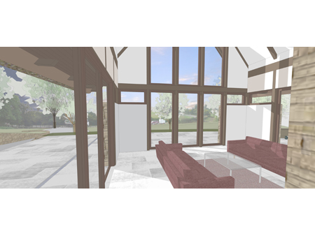 The submitted planning application seeks permission for the creation of a new detached house sited within a parcel of land of approximately 1.1 acres. The building draws inspiration from traditional timber frame and timber clad barn structures, which are typically erected over a brick plinth and roofed with thatch.